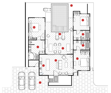 User Instructions: Each arrow or pinpoint will guide you accordingly to each space that you want o explore. Tap or click on each one and slide to the direction which you want to turn to. When looking down, press our logo to return to the main view of the house.